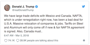 The White House’s recent announcement that the U.S. will impose tariffs on steel imports — including on its NAFTA partners, Canada and Mexico — have spurred calls for retaliation south of the border.