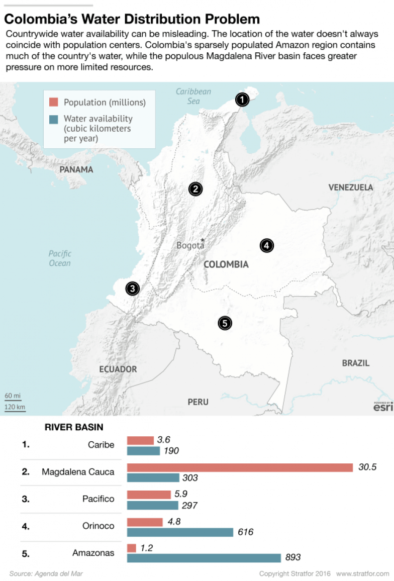 Colombia ranks among the top 10 countries in freshwater availability per capita. Yet service coverage is highly unequal: